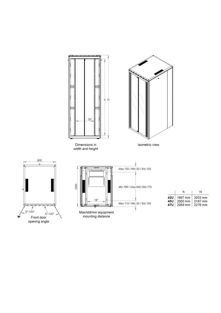 Equip 48,3 cm ( 19 inch ) Serverschrank Glastür DF 800x1000mm 26HE grau