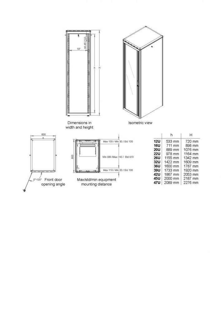 Equip 48,3 cm ( 19 inch ) Serverschrank Glastür DF 600x 800mm 36HE grau