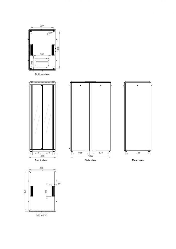 Equip 48,3 cm ( 19 inch ) Serverschrank Glastür DF 800x1200mm 42HE grau