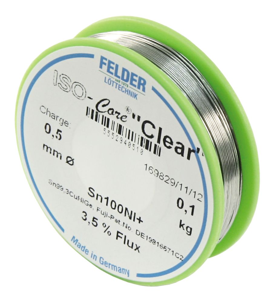 We offer you Felder Löttechnik ETT-1540262 Solder on a roll FELDER ISO-Core ''Clear'', 0.5mm, 100g, lead-free (Sn100%Ni+) always at the best possible price. We can give you a discount of 2% on Felder Löttechnik ETT-1540262 Solder on a roll FELDER ISO-Core ''Clear'', 0.5mm, 100g, lead-free (Sn100%Ni+) if you choose payment in advance on ordering.