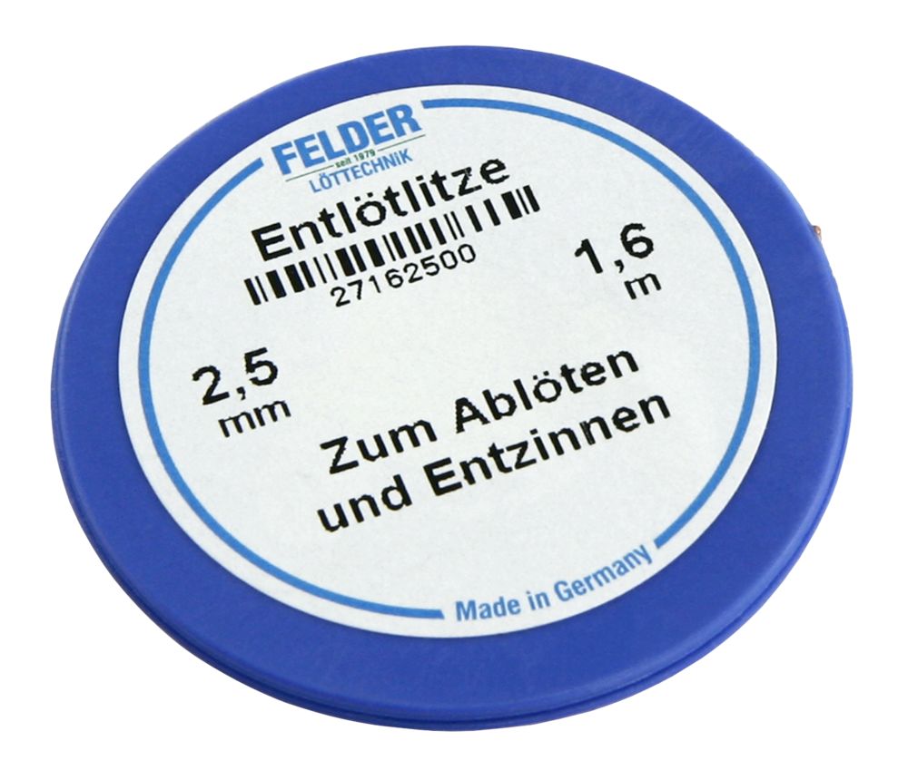 We offer you Felder Löttechnik ETT-1540270 Desoldering braid FELDER, 2.50mm, copper braid soaked in halogen-free flux, 1.60m spool always at the best possible price. We can give you a discount of 2% on Felder Löttechnik ETT-1540270 Desoldering braid FELDER, 2.50mm, copper braid soaked in halogen-free flux, 1.60m spool if you choose payment in advance on ordering.