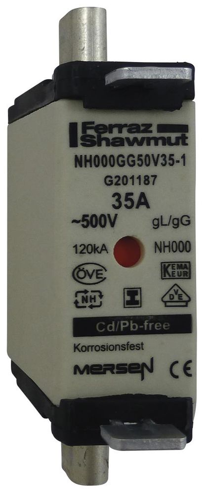 The article Ferraz Shawmut G201187 Lindner NH fuse size 35A 000 1F645., 3W 500VAC 250VDC insulated grip lugs is currently in stock