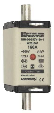 Ferraz Shawmut W201867 Lindner 1F769. NH-fuse link, size 00 160A 500VAC 250VDC 12W