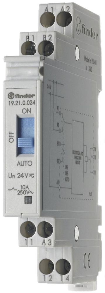19.21.0.024.0000 Finder, Auto-Off-On Relay 10A 24VAC/DC 1w