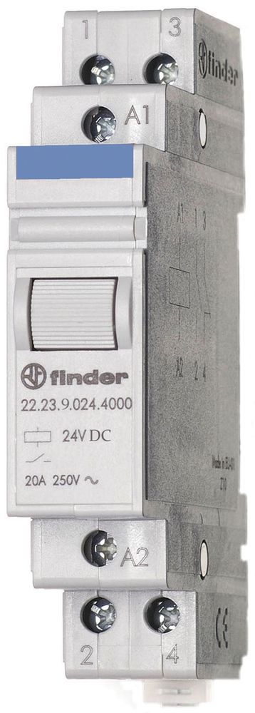 Finder 22.23.9.024.4000 installation relay 24VDC REG 1S+1Ö 20A test button