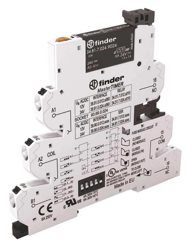 Finder 399000249024 39.90.0.024.9024 coupling relays, 24VUC Master Timer Push-In SSR 24VDC 1S