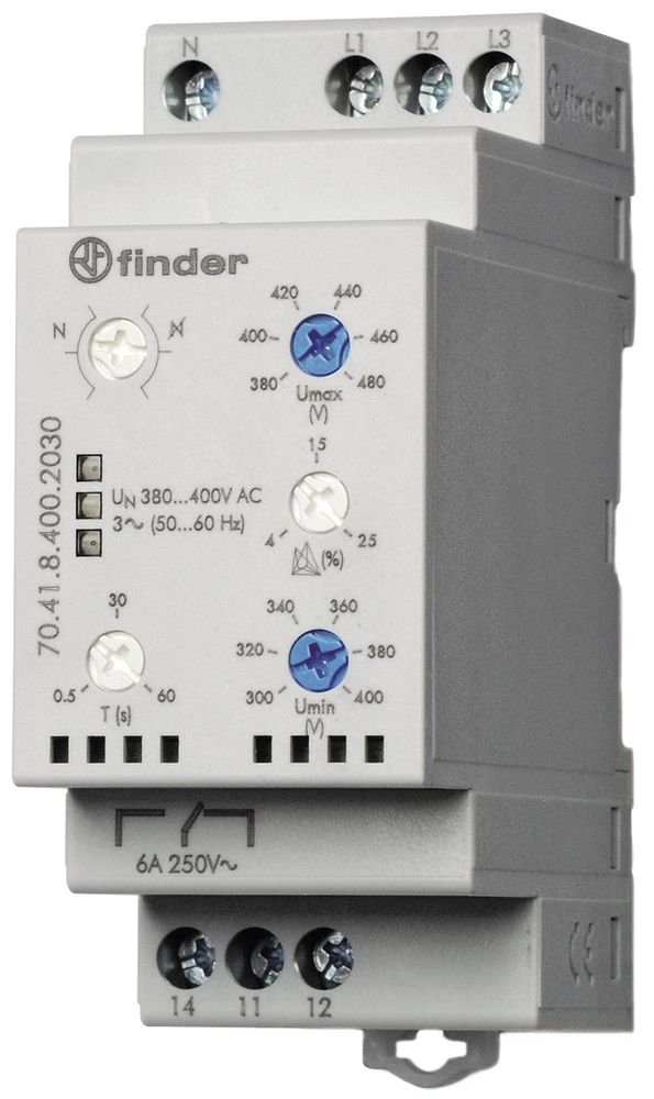 Finder 704184002030 70.41.8.400.2030 network monitoring, 6A 3ph. 415VAC 1We phase failure / sequence