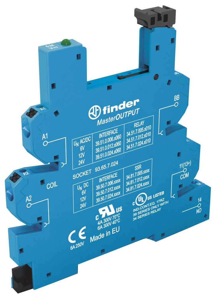 Finder 93.65.7.024 socket 6/12/24VDC push-in terminal blue for 34.51 34.81