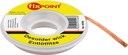 The article Fixpoint 45246 Desoldering braid 2.0 mm - for removing solder from soldering points is currently in stock