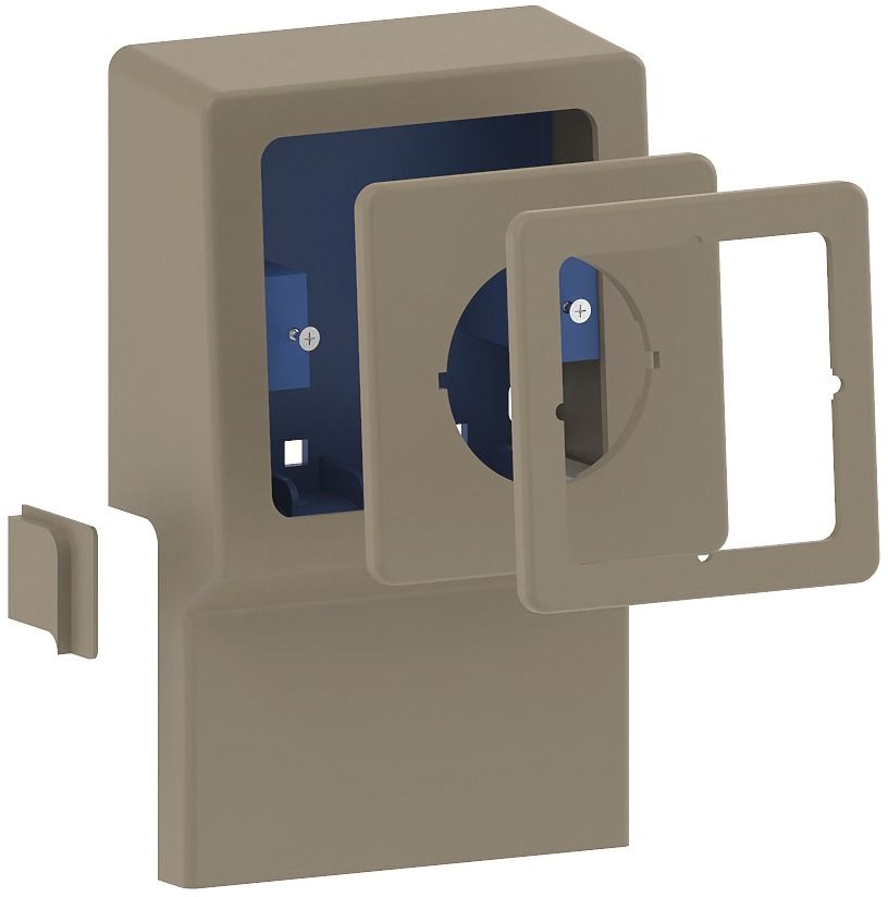 Note: The upper parts of the skirting board channels can be pushed sideways under the cover of the device carrier, whereby the cover of the device carrier provides a cut-concealing function for the upper parts of the skirting board channels.