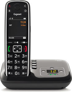 The Gigaset E720A is the landline telephone for the whole family. It offers an integrated answering machine for up to 30 minutes of recording time, speaking dial buttons, direct call transfer via Bluetooth to hearing aids or headsets as well as an SOS function and four direct dial buttons.