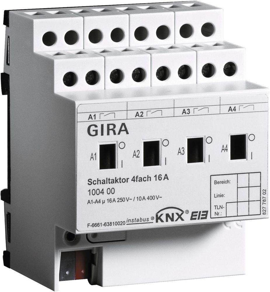 The article Gira 100400 Switch 4-16A 1004 00, manual operation REGplus Instabus KNX / EIB is currently