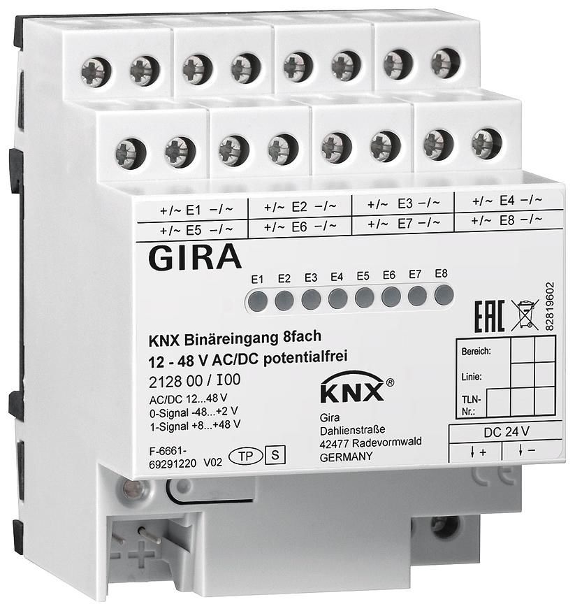 The article GIRA 2128 00 GIRA 212800 binary input 8-fold 24V KNX/EIB REG is currently