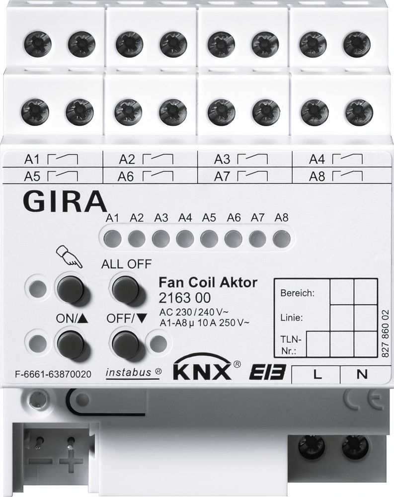The article Gira 216300 Fan Coil Actuator KNX / EIB REG is currently in stock