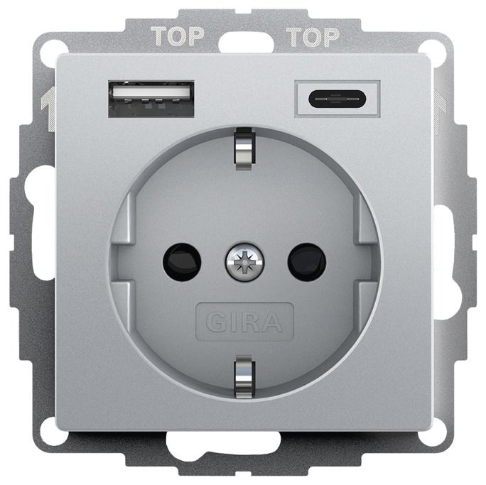 GIRA 245926 SCHUKO SH USB power supply. 2f type A/C system 55 F aluminum