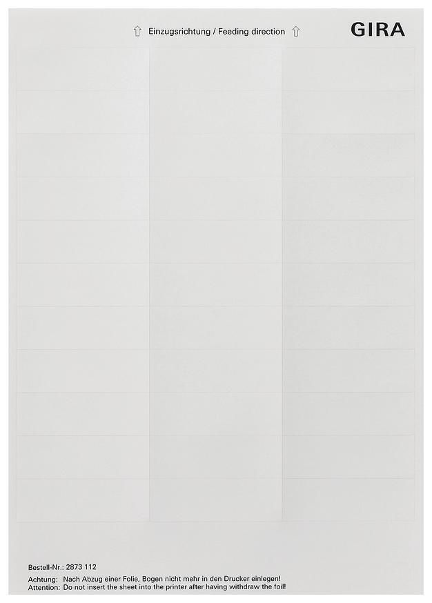 Gira 2873112 Inscription sheets 2873 112, 21,8 x67mm 33 footers pure white