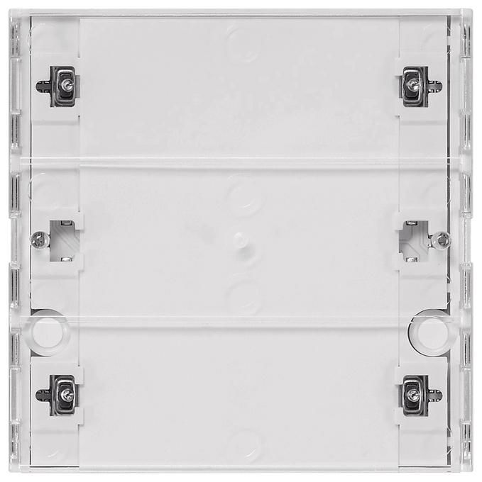 RF push button sensor 1-way for KNX System 55 commissioning rocker The RF push button sensors for KNX send KNX telegrams wirelessly when a button is pressed, depending on the parameter setting when the application program is loaded. These can be telegrams for switching or pressing, for dimming or for controlling blinds, for example. It is also possible to program value transmitter functions (dim value transmitter and scene extensions). Features: Confirmation function as well as transmission and status display via 2-color LED (red green) separately for each button using a 2-stage display function. Status display optionally via separate 1-bit status communication objects. Transmission and confirmation display can be switched off. The push button sensor can be attached to walls using screws or stuck to smooth or transparent surfaces using a mounting plate. Planning, commissioning and parameterization are carried out using ETS (version 5 or newer). Battery-operated device. 'Switching' function: rocker or button function. Command when pressed and released can be configured (ON, OFF, TOGGLE, no reaction). 'Dimming' function: rocker function. Command when pressing the rocker (right and left buttons) can be configured (brighter - ON, darker - OFF). 'Blind' function: rocker function. Command when pressing the rocker (right and left buttons) can be configured (UP, DOWN, TOGGLE). Time between short and long command can be configured. 'Value transmitter' and 'Scene extension' functions: rocker function. Command when pressing the rocker (right and left buttons) can be configured (values 0 to 255, 0 to 100% or scene number). With scene extension: memory function possible. Notes: Batteries are consumables and must be replaced regularly. Please observe the regulations for the disposal of used batteries. The touch sensor is supplied with a program-neutral commissioning rocker. The matching rocker set for the switch range must be ordered separately. When using metallic rocker sets and/or cover frames, range may be reduced.