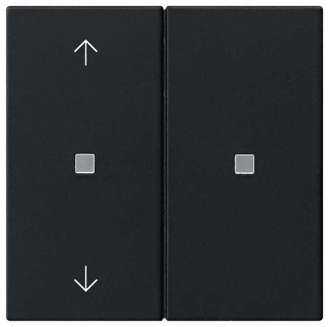 KNX RF operating unit 2-way arrow symbolsSystem 55Matte blackKNX RF - the standardized radio system for retrofitting based on 230 V.Features: KNX RF operating unit for controlling System 3000 inserts and remote KNX devices using KNX RF. Rocker or button function can be set for each control surface. Control of up to four functions possible using the button function of the KNX RF operating unit. KNX RF actuator in conjunction with the System 3000 inserts. Operation on switching, dimming, blinds or room temperature controller inserts as well as 3-wire extension inserts of the System 3000. Integrated temperature sensor. Integrated repeater mode.Room temperature measurement: The RF operating unit has an internal temperature sensor, which makes it possible to measure and transmit the local room temperature. Temperature measurements are only possible in combination with the following inserts: Order no. 5403 00, Order no. 5405 00, Order No. 5406 00, Order No. 5414 00, Order No. 5415 00, Order No. 5395 00, Order No. 5409 00. Operating functions depend on the flush-mounted insert used: The RF operating attachment can be operated with the System 3000 3-wire extension as a 230 V supplied KNX RF operating device. Operating concept Button or rocker function can be parameterized. Switching, dimming and color temperature, color control and brightness, blinds, value transmitter, scene extension, 2-channel operation and controller extension. Switching: The command when pressed and/or released can be set (no reaction, switch on, switch off, toggle). Dimming and color temperature: Brightness and/or color temperature, the command when pressed, the time between switching and dimming, dimming in different stages, the telegram repetition when pressed for a long time and the sending of a stop telegram when the operation is finished can be adjusted. Color control and brightness: Color circle cycle or brightness adjustment, the command when pressed, the time between switching and dimming, the start value, the step size and the time between two telegrams can be adjusted. Blinds: The command when pressed and the operating concept can be adjusted. The operating concept can be adjusted in the times for short and long operations and slat adjustment. Value transmitter: The function (1 byte, 2 byte, 3 byte or 6 byte value transmitter) and the value can be adjusted. Scene extension: The function (with or without memory function) and the scene number can be adjusted. 2-channel operation: Up to two telegrams can be sent to the KNX by pressing a button. The operating concept can be set and the time for short and long operations can be adjusted. The functionality of the channels can be set separately. Controller extension: The functionality (operating mode switching, forced operating mode switching, presence function and setpoint shift) can be set. Lock function for locking individual buttons or rockers.Controller extension properties: The controller extension can be parameterized as a rocker or button function. Control of a room temperature controller (operating modes, presence function and setpoint shift). Evaluation of the controller status via the status LED. Temperature measurement can be activated. Measurement of the room temperature with an internal sensor or optionally by forming a measured value of the internally measured temperature with an external temperature.Functions of the status LED: The function selection is made for each status LED. The following functions can be parameterized: always OFF, always ON, actuation display, telegram acknowledgement, status display, control via separate LED object, operating mode display, controller status display, presence status display, setpoint shift display. Color can be parameterized. The color selection is made either jointly for all status LEDs or separately for each status LED of the device. The status LEDs can light up red, green or blue. The brightness of the status LED can be set to six levels.