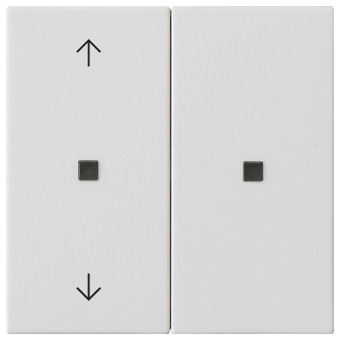 KNX RF operating unit 2-way arrow symbolsSystem 55Pure white, satin finishKNX RF - the standardized radio system for retrofitting based on 230 V.Features: KNX RF operating unit for controlling System 3000 inserts and remote KNX devices using KNX RF. Rocker or button function can be set for each control surface. Control of up to four functions possible using the button function of the KNX RF operating unit. KNX RF actuator in conjunction with the System 3000 inserts. Operation on switching, dimming, blinds or room temperature controller inserts as well as 3-wire extension inserts of the System 3000. Integrated temperature sensor. Integrated repeater mode.Room temperature measurement: The RF operating unit has an internal temperature sensor, which makes it possible to measure and transmit the local room temperature. Temperature measurements are only possible in combination with the following inserts: Order no. 5403 00, Order no. 5405 00, Order No. 5406 00, Order No. 5414 00, Order No. 5415 00, Order No. 5395 00, Order No. 5409 00. Operating functions depend on the flush-mounted insert used: The RF operating attachment can be operated with the System 3000 3-wire extension as a 230 V supplied KNX RF operating device. Operating concept Button or rocker function can be parameterized. Switching, dimming and color temperature, color control and brightness, blinds, value transmitter, scene extension, 2-channel operation and controller extension. Switching: The command when pressed and/or released can be set (no reaction, switch on, switch off, toggle). Dimming and color temperature: Brightness and/or color temperature, the command when pressed, the time between switching and dimming, dimming in different stages, the telegram repetition when pressed for a long time and the sending of a stop telegram when the operation is finished can be adjusted. Color control and brightness: Color circle cycle or brightness adjustment, the command when pressed, the time between switching and dimming, the start value, the step size and the time between two telegrams can be adjusted. Blinds: The command when pressed and the operating concept can be adjusted. The operating concept can be adjusted in the times for short and long operations and slat adjustment. Value transmitter: The function (1 byte, 2 byte, 3 byte or 6 byte value transmitter) and the value can be adjusted. Scene extension: The function (with or without memory function) and the scene number can be adjusted. 2-channel operation: Up to two telegrams can be sent to the KNX by pressing a button. The operating concept can be set and the time for short and long operations can be adjusted. The functionality of the channels can be set separately. Controller extension: The functionality (operating mode switching, forced operating mode switching, presence function and setpoint shift) can be set. Lock function for locking individual buttons or rockers.Controller extension properties: The controller extension can be parameterized as a rocker or button function. Control of a room temperature controller (operating modes, presence function and setpoint shift). Evaluation of the controller status via the status LED. Temperature measurement can be activated. Measurement of the room temperature with an internal sensor or optionally by forming a measured value of the internally measured temperature with an external temperature.Functions of the status LED: The function selection is made for each status LED. The following functions can be parameterized: always OFF, always ON, actuation display, telegram acknowledgement, status display, control via separate LED object, operating mode display, display of controller status, display of presence status, display of setpoint shift. Color can be parameterized. The color selection is made either jointly for all status LEDs or separately for each status LED of the device. The status LEDs can light up red, green or blue. The brightness of the status LED can be set to one of six levels.