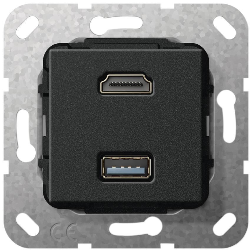 Gira 567810 HDMI, USB 3.0A Gender Changer, use black matt