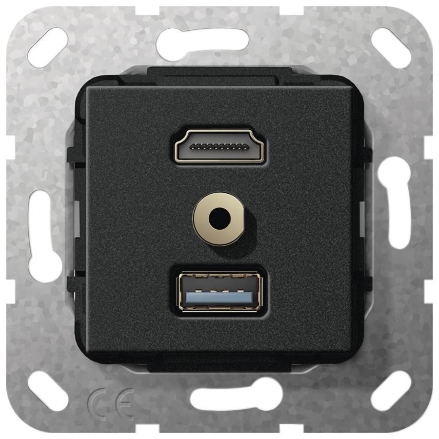 Gira 568110 568 110 HDMI, USB 3.0 A, M jack, cable Whip insert Matt black