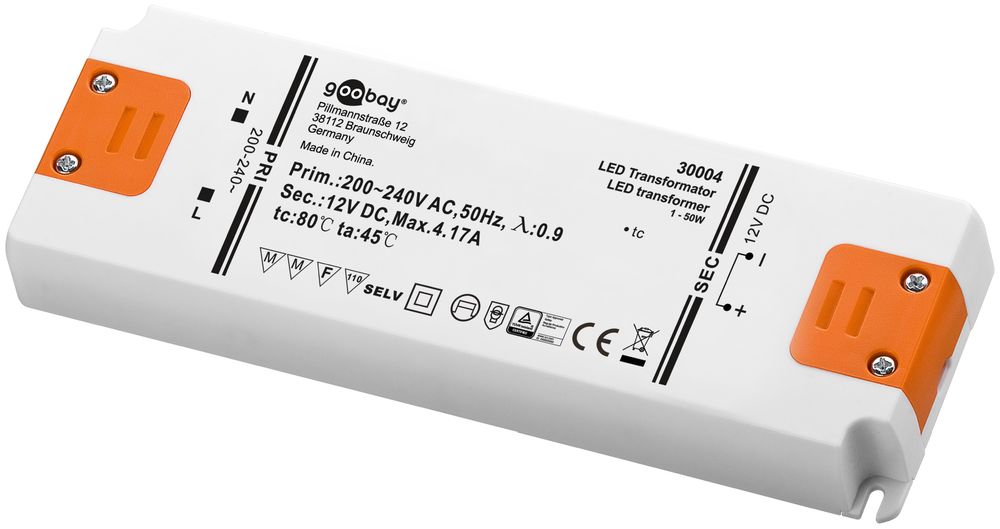 We offer you Goobay 30004 LED transformer 50W / 12V - 12V DC for LEDs up to 50 watts total load always at the best possible price. We can give you a discount of 2% on Goobay 30004 LED transformer 50W / 12V - 12V DC for LEDs up to 50 watts total load if you choose payment in advance on ordering.