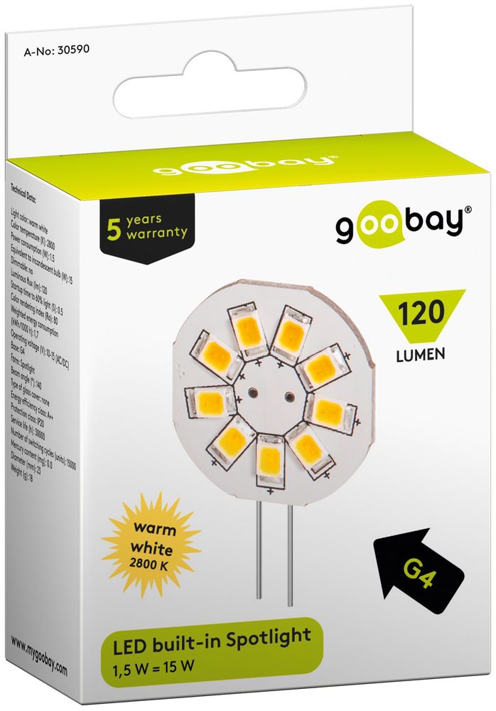 In addition, you can save money with our attractive graduation prizes with every purchase. If you buy a minimum of 50 pieces of Goobay 30590 LED recessed downlight, 1.5W - Base G4, replacing 15 W we can offer you a price of 3,54 EUR per piece. The more you buy, the cheaper the article will be.