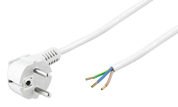 Goobay 93313 Power cable 5 m, white - Schuko (Type F, CEE 7/7)> loose cable ends