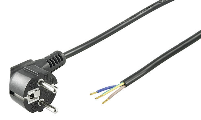 Goobay 96034 Power cable 5 m, black - Schuko (Type F, CEE 7/7)> loose cable ends