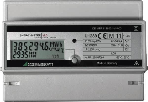 Active energy meter with MID approval, calibrated for 4-wire, 400 V and 5(65) A direct connection. The calibrated energy meters can be used to record and bill active energy in industry, households, commerce and building technology. The values are transmitted to recording, billing and optimization systems as well as building automation and control technology via pulse output, LON, M-Bus or L-Bus interfaces. The installation itself is extremely simple because the meter detects connection errors and signals them immediately. The display of the active power offers maximum convenience because it provides immediate information about the current circuit load. If you want to find out more about your network, simply expand the functionality. Professional energy meter for 4-wire networks with 65 A direct connectionAccuracy class B for industry and commerce as well as increased requirements in householdsCost savings through initial calibration ex works, according to MID, conformity assessment procedure module B+DCalibration also with adjustable transformer ratiosConfigurable multifunctional versions for recording reactive energy and network measured variablesDisplay of installation errors: rotating field direction, phase failure, reversed polarity transformers, overloadUniversal pulse output with adjustable pulse rate, pulse duration and selectable voltage rangeFlexible communication via integrated LON, M-Bus or L-Bus interfaceFull function possible with the circuit switched off via fail-safe 24V auxiliary voltageSealable cover, parameter lock3 year guaranteeMade in Germany. Multifunctional design - additional parameters Depending on the type of multifunctional design, the meter can also record reactive energy and display up to 26 other measured variables. This means that the voltage level, the utilization of individual phases, the reactive power share and the function of compensation systems can be evaluated at any time by simply pressing a button and without additional measuring equipment. Versatile initial calibration ex worksThe meters comply with the MID directive that is valid throughout Europe and in Switzerland and are delivered with initial calibration ex works. They can be used immediately for billing purposes. This reduces delivery times and costs. The conformity assessment is carried out according to Module B + D, the declaration of conformity is included in the operating instructions.