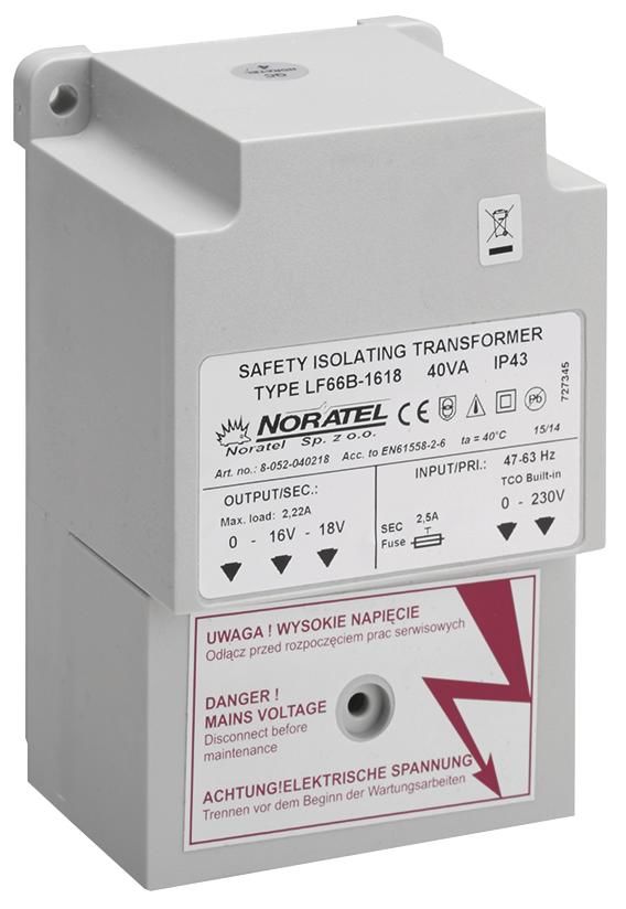 Grothe EP 18 transformer LF66B-1618 230VAC/16+18VDC 40VA IP43 74824