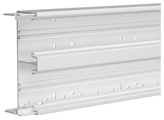 With base perforation (drill tolerance compensation on all sides) for direct wall mounting and additional rectangular perforation for tool-free fastening of the duct using clip technology on consoles. With front-locking, tool-free device installation for fastening devices and device installation boxes with quick fastening. Additional C-profile as device installation option. Couplings for simple and precise duct assembly, partition walls and cable retention clips available as accessories.