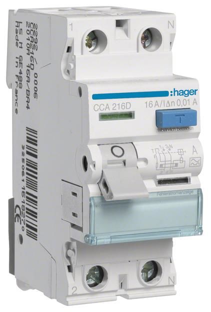 The article Hager GFCI CCA216D, 2-pole 16/0, 01 amps is currently in stock
