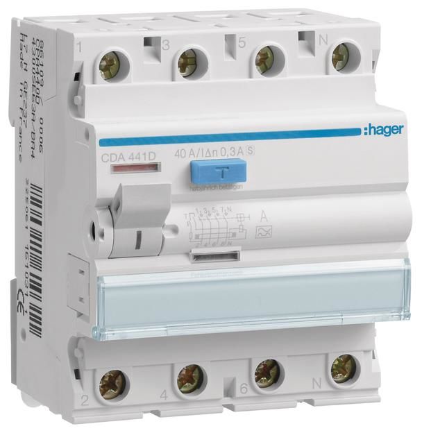 CDA441D Hager residual current circuit breaker 4P 40A 30mA type A