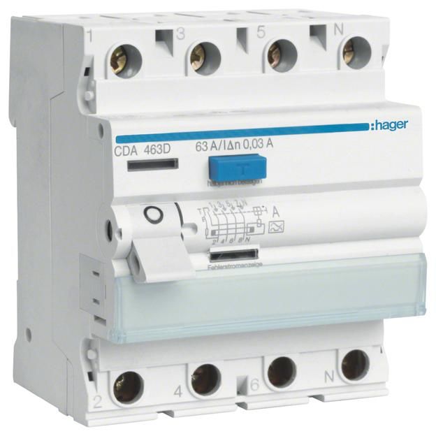 Hager GFCI CDA463D, 4-pole 63/0, 03 Amp 161008