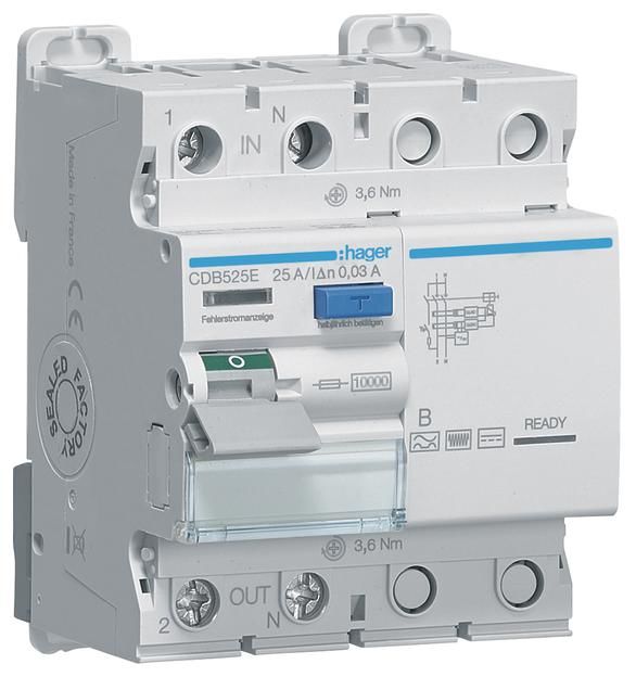Hager CDB525E FI switch 2-pole 10kA 25A 30mA type B 230V