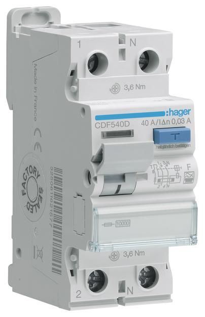 Hager CDF540D FI switch 2P 10kA 40 30mA type F