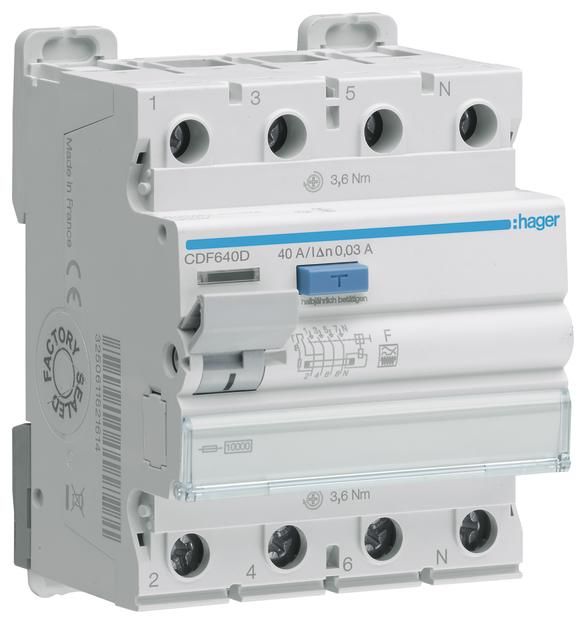 Hager CDF640D FI switch 4P 10kA 40A 30mA Type F