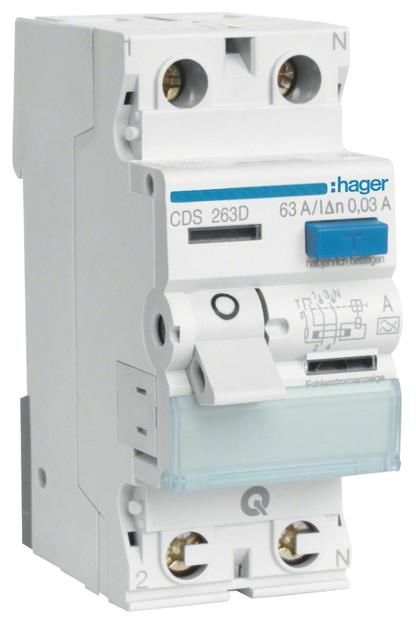 Hager GFCI CDS263D, 2-pole 63/0, 03 amp plug connection