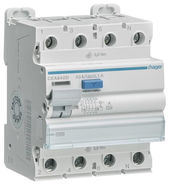 Hager CEA640D FI switch 4-pin 10kA 40A 100mA type A