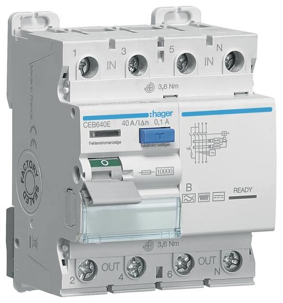 Hager CEB640E residual current circuit breaker 4-pole 10kA 40A 100mA type B