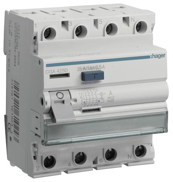 Hager GFCI CGA425D, 4-pole 25/0, 5 amps