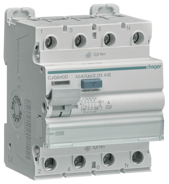 Hager CJG640D FI switch 4P 10kA 40A 30mA type AG