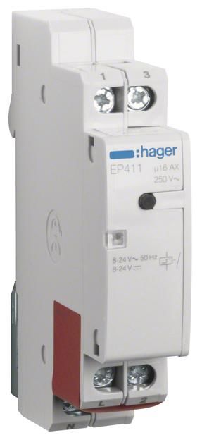 Hager Remote Switch 8-24V EP411, 1S 16A AC / DC 1PLE