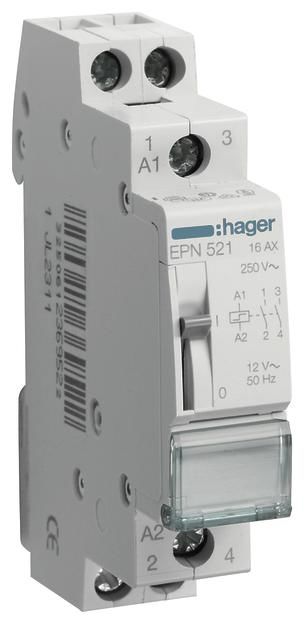 Hager EPN521 remote switch, 12V 16A 2 NO