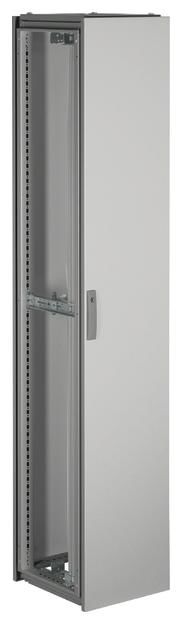 Cabinet frame made of galvanized sheet steel, cover plate and rear wall made of hot-dip galvanized sheet steel. With horizontal support rail for supporting rail stabilization, coupling plates for supporting rail fastening, prepared for univers N interior fitting system. Busbar bushing can be flanged next to each other through open side walls.