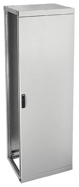 Cabinet frame made of galvanized sheet steel, cover plate and rear wall made of hot-dip galvanized sheet steel. With horizontal support rail for supporting rail stabilization, coupling plates for supporting rail fastening, prepared for univers N interior fitting system. Busbar bushings can be flanged next to each other through open side walls.