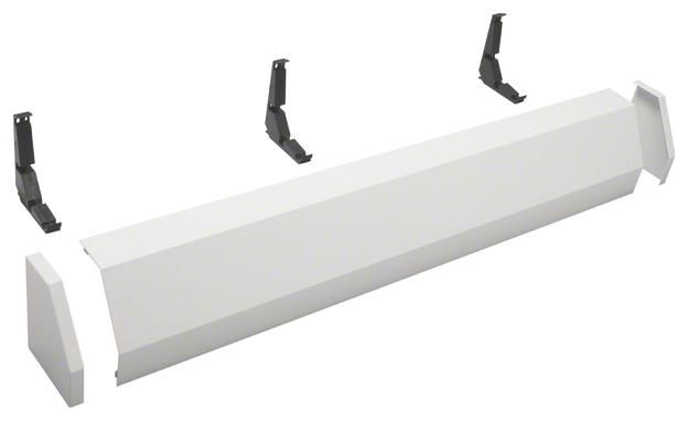 For a clean transition from the channel system for cabinet, easy to install and adapts to all cabinets in the depths 205, 218, 275 and 350 mm. Trunking depth 150 mm or by. 90 ° rotation 190 mm Color RAL 9010 (pure white). Cabinet width: 1300 mm Type: FZ445