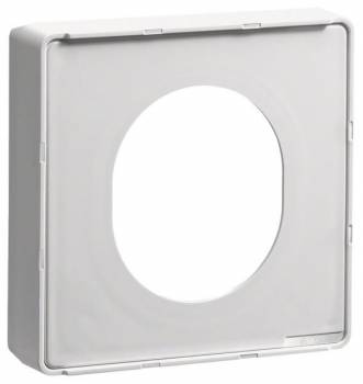Cover CEE socket cut-concealing, halogen-free for DA200, traffic white. Cover set consisting of central plate and frame for device installation for CEE socket up to 32 A, for ceiling connection column system.