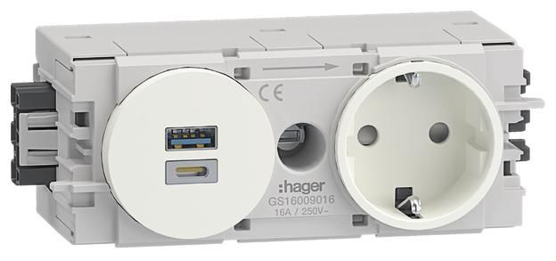 Hager GS16009016 socket 1f with USB charger A+C 15W Wago Winsta